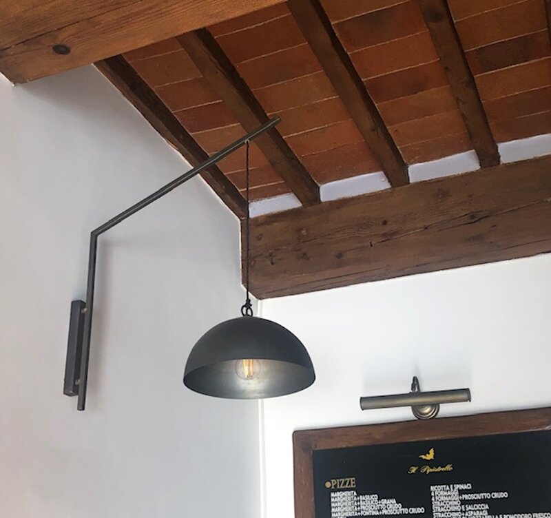 APPLIQUE A BRACCIO CON CALATA IN VARIE MISURE E MATERIALE (CUPOLA FERRO, PARALUME STOFFA, VETRO o CERAMICA). COLORE FERRO GREZZO (disponibile in altre finiture)