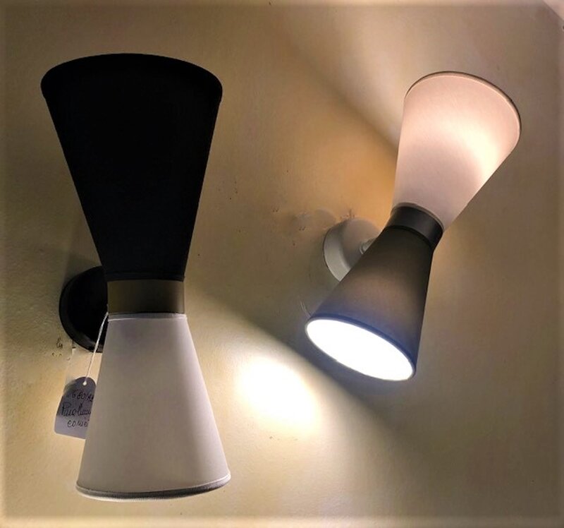 APPLIQUE CON PARALUME IN STOFFA COLORI A SCELTA E14. LISCIO o INCRESPATO ORIENTABILE E GIREVOLE SU MISURA VARIE GRANDEZZE (a 1, 2, 3, 4, 5 luci) su richiesta.