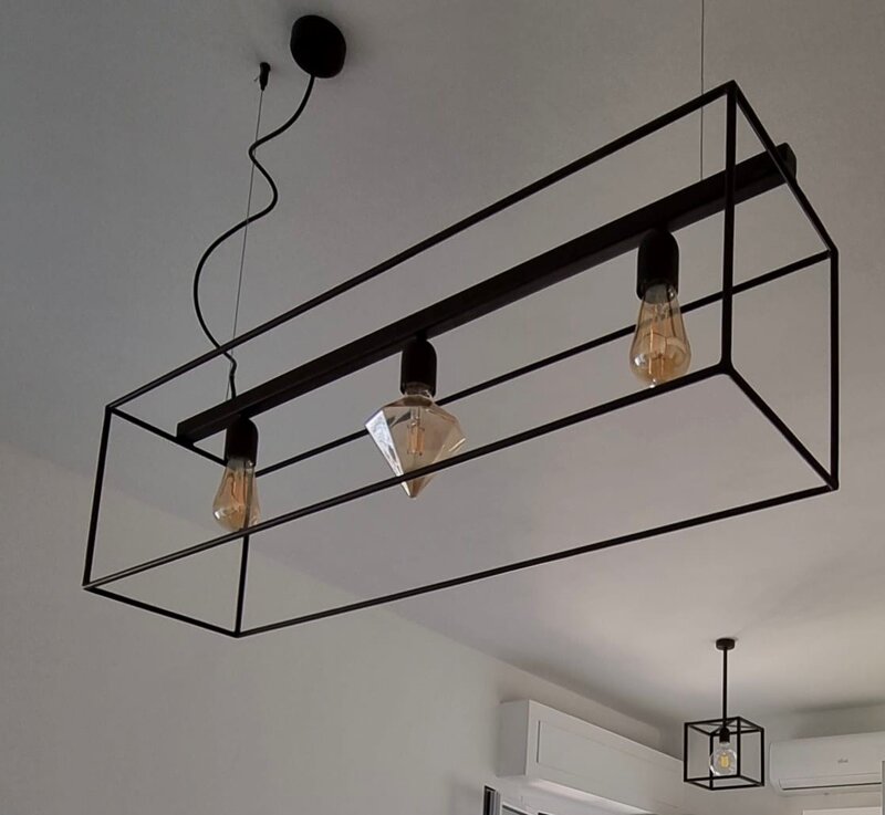 LANTERNA RETTANGOLARE A 3 LUCI E27. sospensione o plafoniera realizzabile su misura e su richiesta.