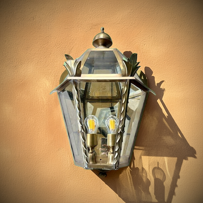 LANTERNE OTTONE MISTE COMPOSTE IN VARIE FORME E MISURE IN OTTONE, BRONZATO, NIKELATO O VERNICIATO NATURALE CON VETRI SATINATI O TRASPARENTI.