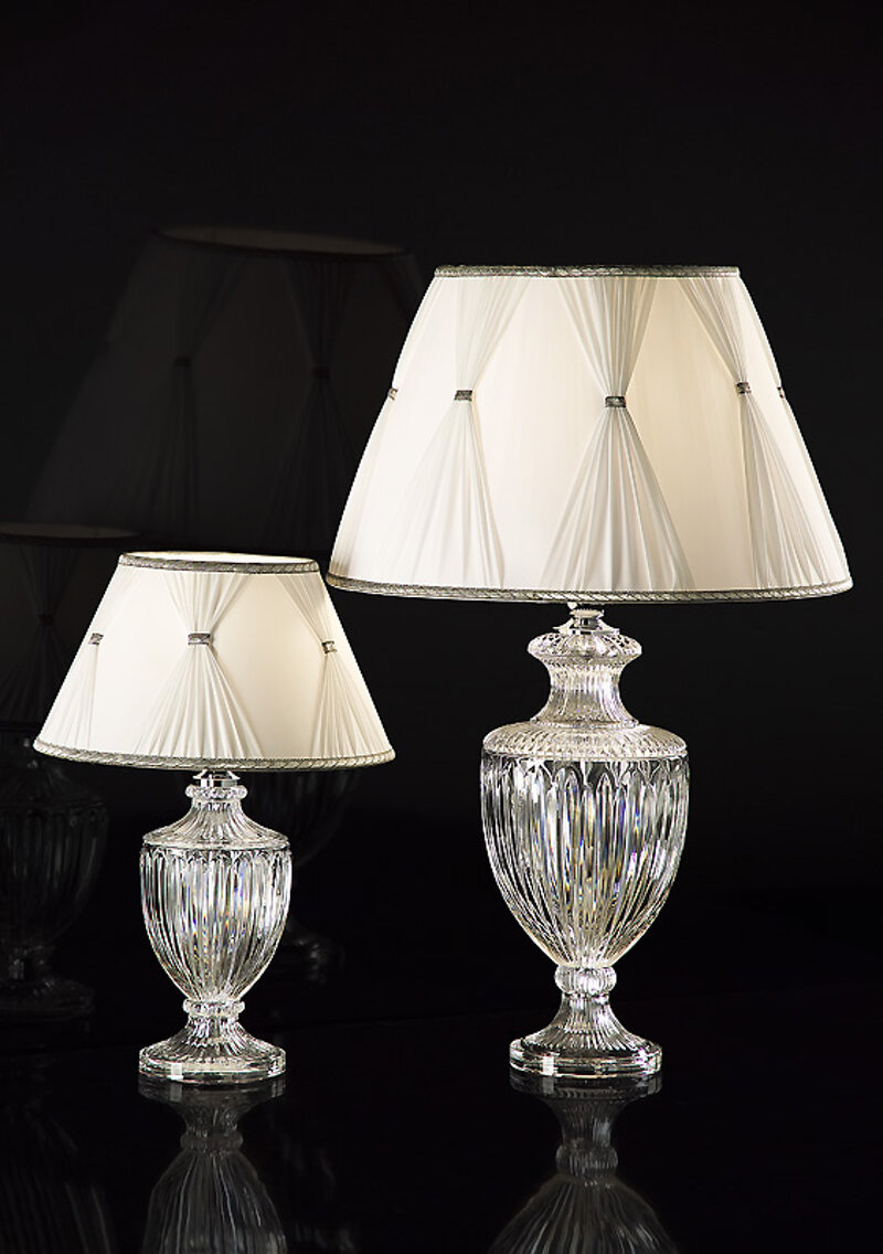 LUME CRISTALLO VASO TRASPARENTE CON PARALUME IN SETA CON RIPORTI A TENDINE LAVORATI A MANO H.70CM D.45 1XE27 MAX 120WATT (DISPONIBILE NELLA VERSIONE PICCOLA H.46CM D.30). SU RICHIESTA REALIZZABILE LUME CRISTALLO CARAMELLA (grande e piccolo) e LUME CRISTALLO PIRAMIDE (grande e piccolo) oppure lumi in cristallo su richiesta. prezzi a partire da euro 220,00