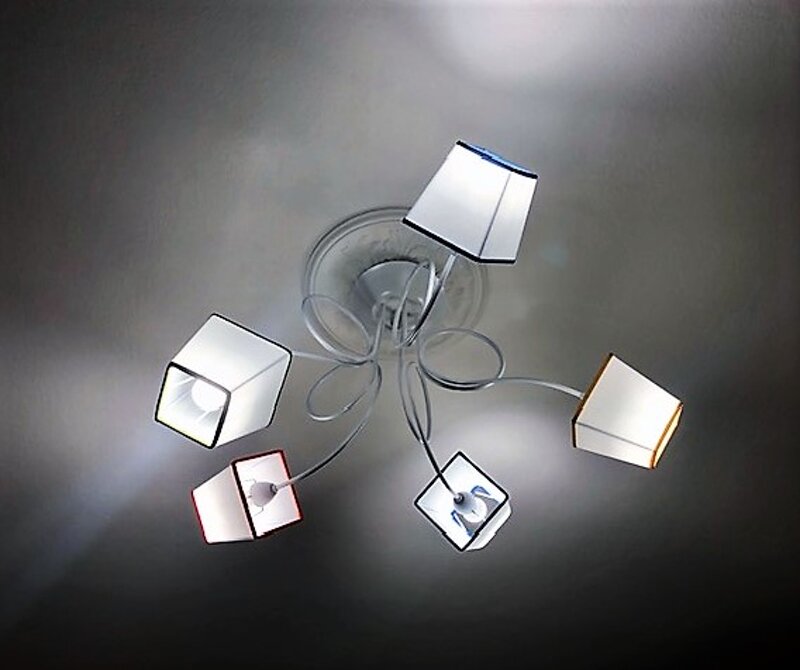 Plafoniera bracci mossi con paralumi colorati realizzabile su misura e su richiesta del cliente. struttura e paralumi in vari decori. chiedi info per colori e misure e prezzi.