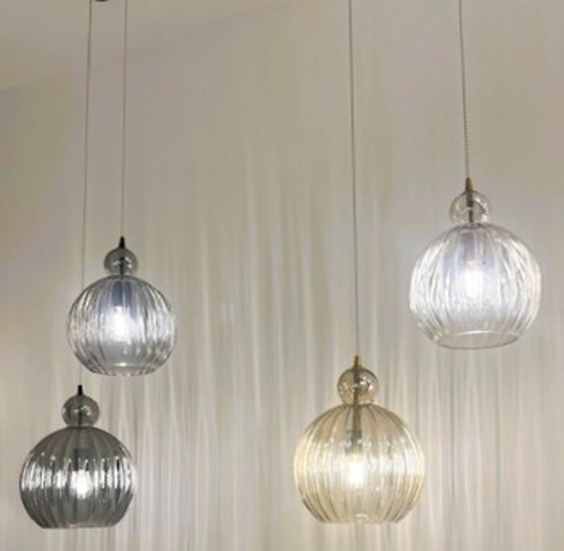 SFERA AMBRA o TRASPARENTE DIAM 10-15-25-30 con cavetto su misura. COLORI SU RICHIESTA SINGOLE o GRUPPI DI CALATE A PIU' LUCI.
